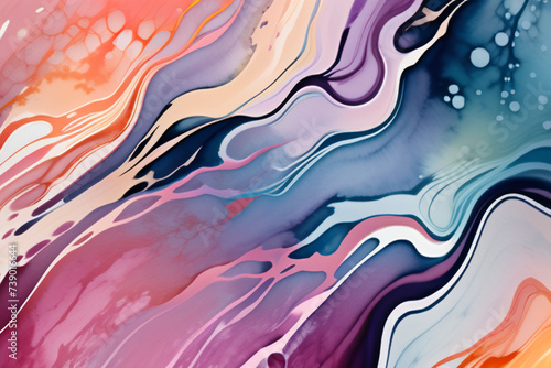 Closeup of abstract watercolor paint background texture with liquid fluid marbled paper texture banner texture. Generative AI (생성형 AI)