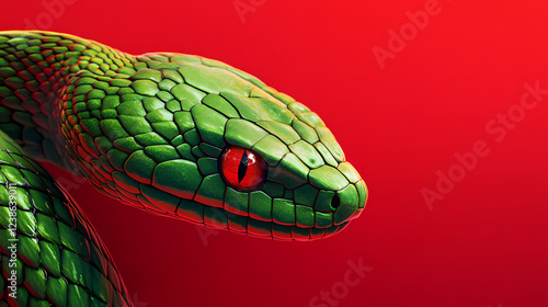 Close-up of an alert green viper