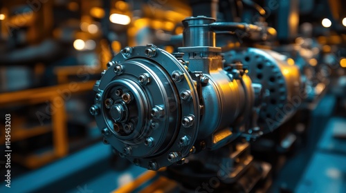 Close-up of an industrial engine component.