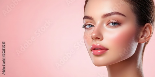 Close-Up of Beautiful Woman with Flawless Skin and Natural Makeup