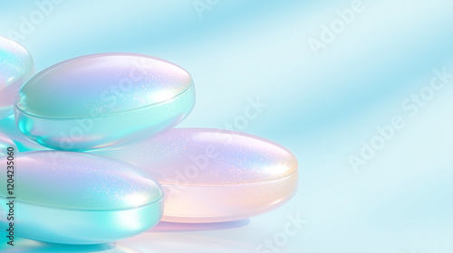Close-up of capsules and tablets in neon color. Concept of design of medical and cosmetic products.