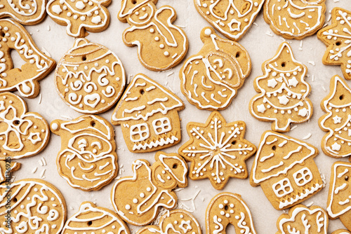 Close-up of Christmas pastries on a light background with golden snowflakes