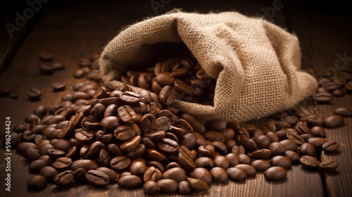 Close-up of coffee beans in a sack. generate by ai