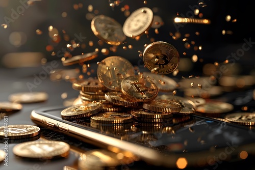 Close-up of coins and cell phone