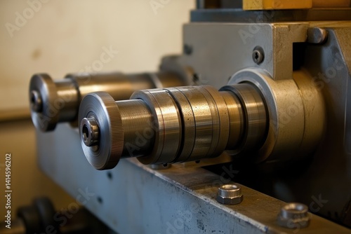 Close-up of Complex Metalworking Machine Precision Engineering in a Workshop Environment