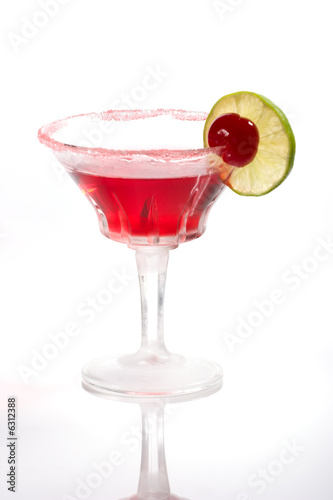 Closeup of Cosmopolitan cocktail in martini glass.