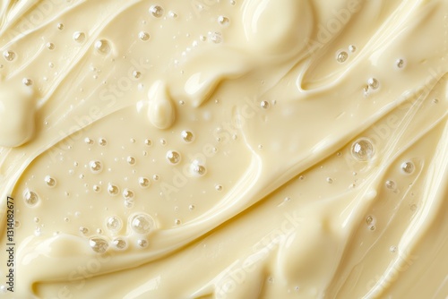 Close-up of creamy texture with pearlescent bubbles. AI generated