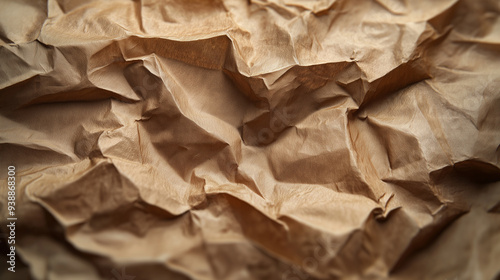 Close-up of crumpled brown paper creating a textured background.