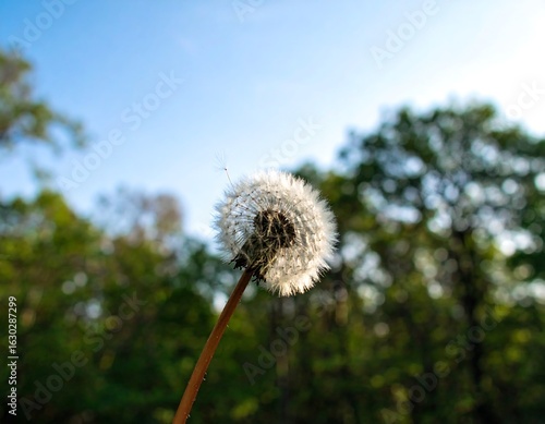 Close-up of dandelion seed head against a clear sky