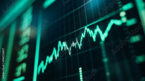 Close-up of digital stock market screen showing dividend stock graph with green upward trend line, symbolizing financial growth and investment success.