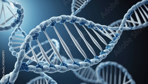 Close-Up of DNA Strand with Microbots Interacting for Advanced Genetic Engineering, Biotechnology, and Molecular Research Visualization"