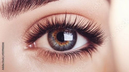 Close-up of eyelash extensions with a mix of lengths, applied to create a natural yet voluminous effect.