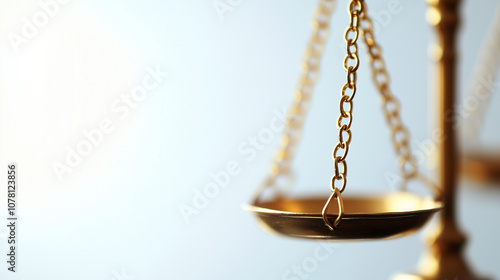 Close-up of finely crafted golden scales of justice on a clean white background, capturing the essence of fairness and legal precision