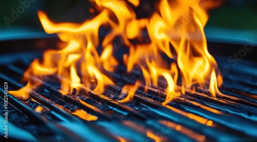Close-up of flames on an unlit grill