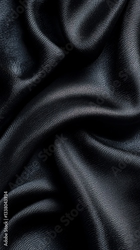 Close-up of Flowing Dark Fabric with Silky Texture and Smooth Ripples