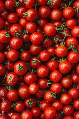 Close-up of fresh red tomatoes with green stems