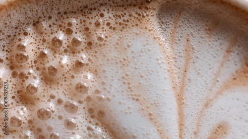 Close-up of Frothy Coffee with Foam and Swirls in a Cup
