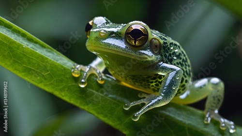 Close-Up of Glass Frog on Leaf with Translucent Belly in Rainforest