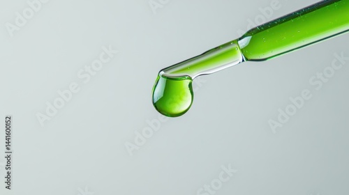 Closeup of Green skincare,A drop of transparent cosmetic gel on a green background,product liquid bubble,serum drops scattered ,Collagen gel,Aloe Vera cosmetic gel,The concept of natural cosmetics.
