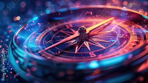 Close-Up of Illuminated Compass with Colorful Bokeh Background