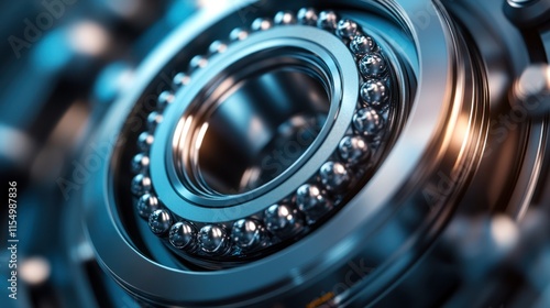 Close-up of metallic ball bearing mechanism.