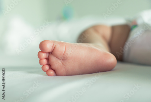 Closeup of new born baby's feet.