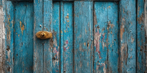 Close-up of old blue wooden surface with peeling paint and rustic texture