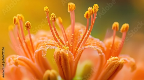Close-up of Orange Flower Stamens and Petals with Yellow Pollen