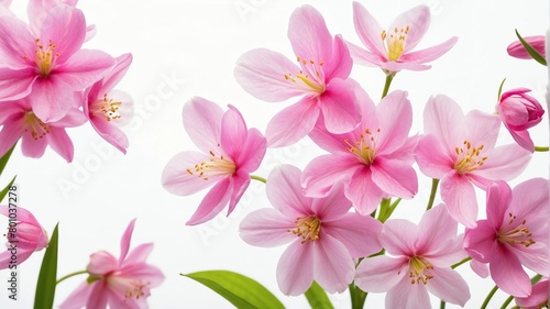 closeup of pink spring flowers on plain white background from Generative AI