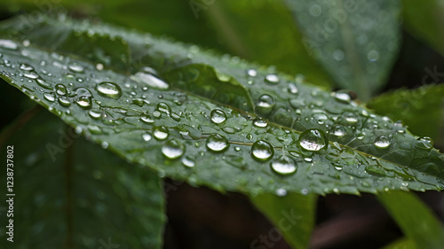 Closeup of raindrops on leaves Guilford Connect Close-up of wet plant leaves forest background,