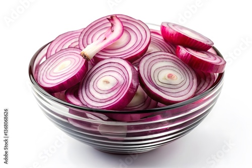 Close-up of sliced red onions in a bowl with fresh and organic ingredients