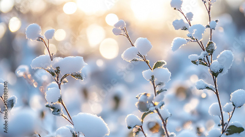 closeup of snow covered plants in winter morning