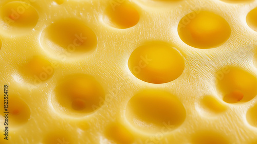 Close-up of Swiss cheese with iconic holes and creamy yellow texture.