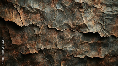 Close-up of textured, crumpled brown paper with intricate folds and shadows, ideal for backgrounds