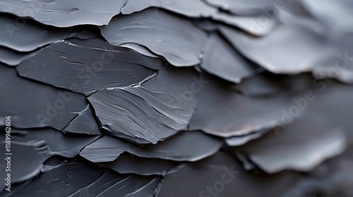 Close-up of textured dark gray surface with layered, cracked, and sculpted details.