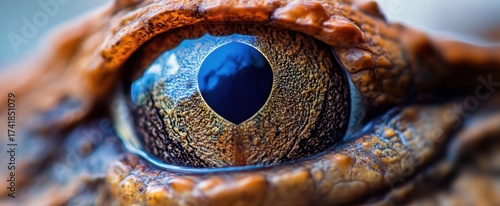 Close-Up of Textured Eye of Reptile with Unique Iris Pattern