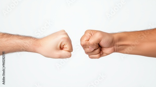 Close-up of two fists bumping, symbolizing unity, teamwork, and mutual support. Business collaboration and friendship concept