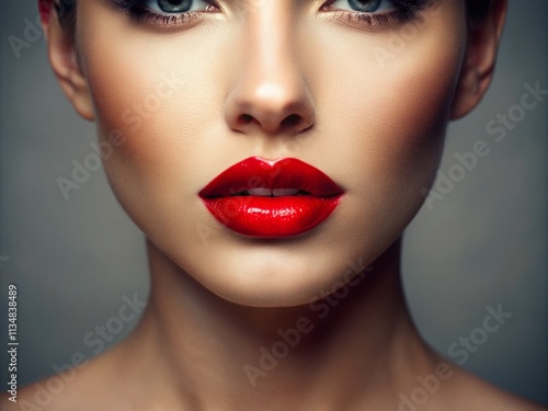 Close-Up of Woman's Red Lips Emphasizing Beauty and Elegance with Rule of Thirds Composition for Fashion and Makeup Photography