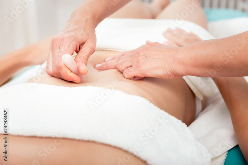 Close-up of woman's stomach undergoing therapy in spa