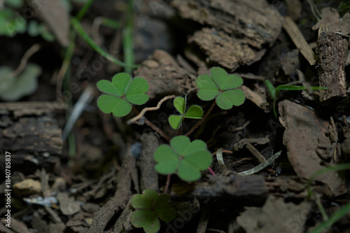 Closeup pf small clovers in nature