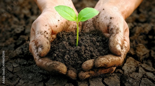Close-up photograph of hands gently cradling a young seedling, symbolizing growth, care, and environmental conservation.