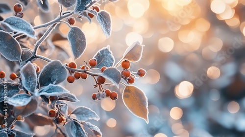 Closeup photograph of icy frost on tree branch
