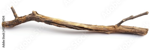 Closeup Pine Tree Branch. Wood Stick with Bark Isolated on White Background