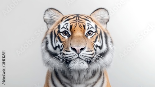 Close-up portrait of a tiger. Detailed and focused on facial features. Striped coat, and expressive eyes