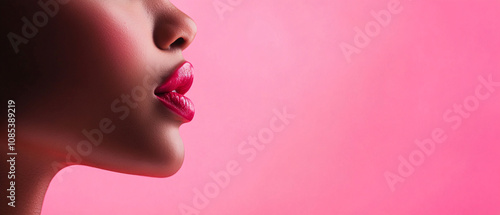 Closeup Profile of Womans Face with Vibrant Pink Lipstick