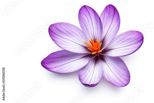 Close-up Purple Crocus Flower Blossom on White Background for Spring