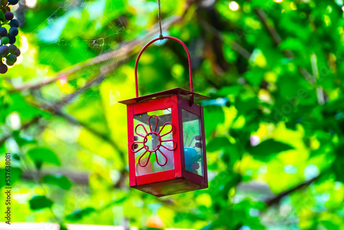 closeup red lantern in the garden