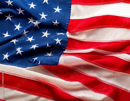 Closeup ruffled American flag isolated