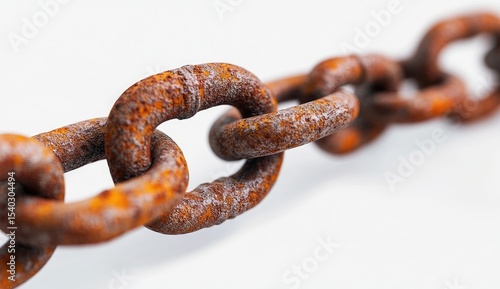 Close-up rusty metal chain links on white background
