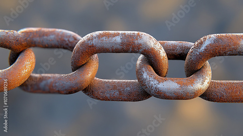close-up shot of a chain, with each link intricately designed, symbolizing strength, unity, and interconnectedness. The detailed texture emphasizes resilience and the power of connections